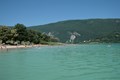 Bon Vent Beach at the Lake Aiguebelette is bordered with pines pr…