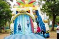 Een pretpark voor kleine kinderen met springkussens, opblaaskastelen, glijbanen, schommels en andere…