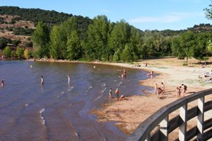 Er is een gratis parkeerplaats. Niet ver daar vandaan is een strandje met een badmeester, waar kinderen kunnen zwemmen in een afgebakend stukje van het meer.