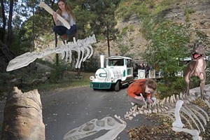 Vervolgens neemt een treintje je mee door een Middellandse-Zeebos en wijst een gids je de bomen aan die fossielen zijn geworden.